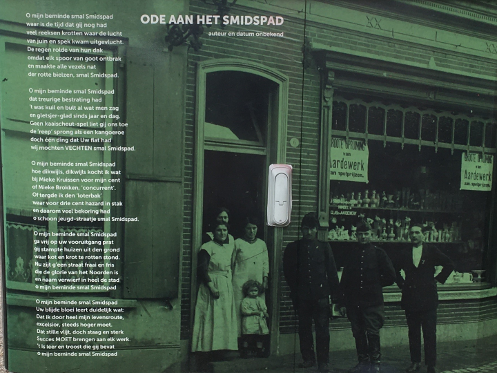 Op de andere zijde van het transformatorkastje is van een onbekende dichter ook een Ode aan het Smidspad te lezen.